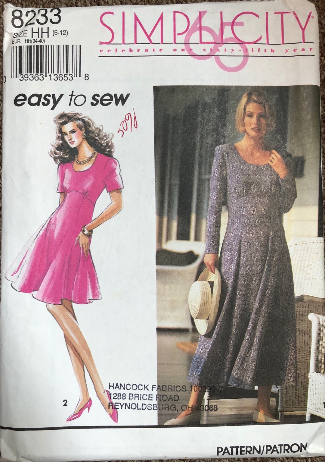 Vintage Simplicity 8233 Fit And Flare 90s Dress Sewing Pattern Etsy Ireland